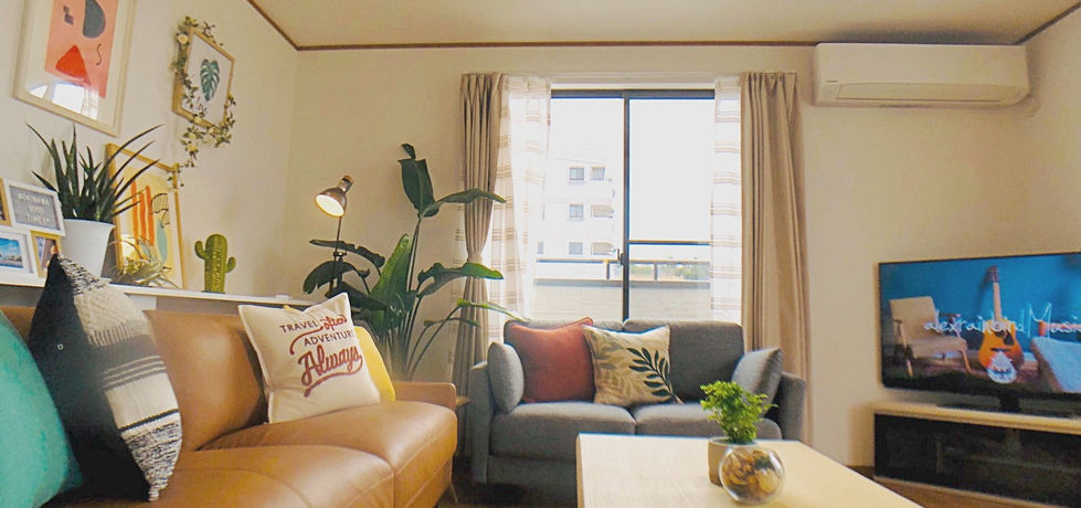 以北歐清新色彩的妝點,翠綠植栽打造出充滿自然感、空間舒適的三層樓獨棟房屋,在陽台遠眺沖繩海景,海島獨有的度假感油然而生!